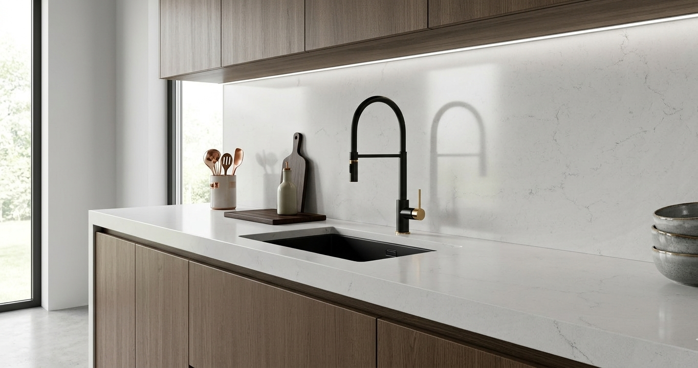 Kimberly quartz slabs offer a soft, cloud-like white surface kissed with subtle, wispy veining that adds a gentle depth to its clean aesthetic. Its understated elegance pairs beautifully with both modern and traditional designs, making it a timeless choice for any interior.
