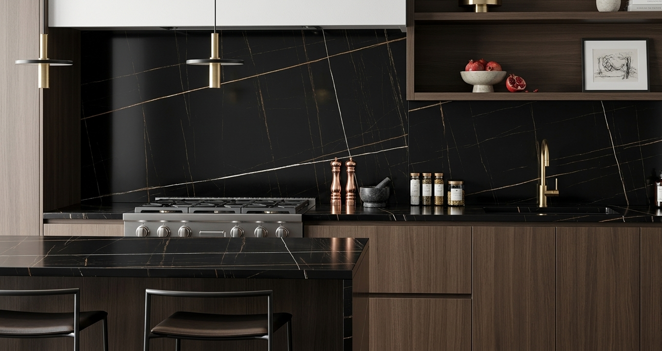 Noir Laurent features its own unique veining pattern and movement, giving each slab a distinct visual identity. Designed for countertops, walls, and architectural applications, this Ultra Compact Surface offers durability, low maintenance, and long-term performance while elevating the overall design of the space.