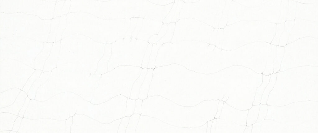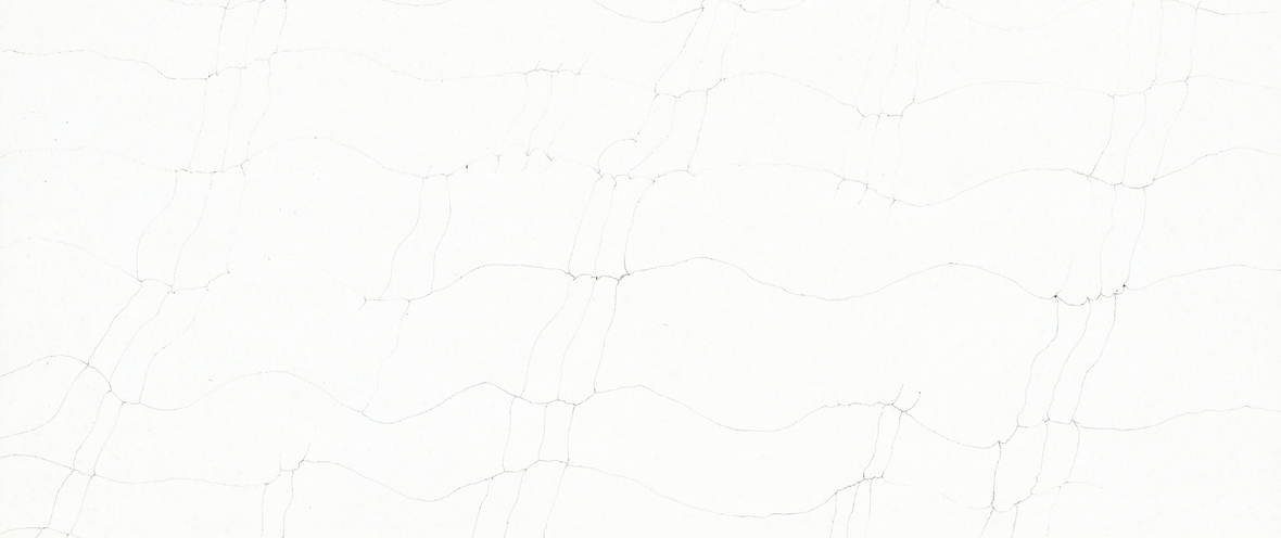 This quartz slab features a crisp white surface defined by thin, delicate charcoal veins that form a unique, geometric web-like pattern. It offers a subtle yet sophisticated design that brings a modern, tailored feel to any interior.