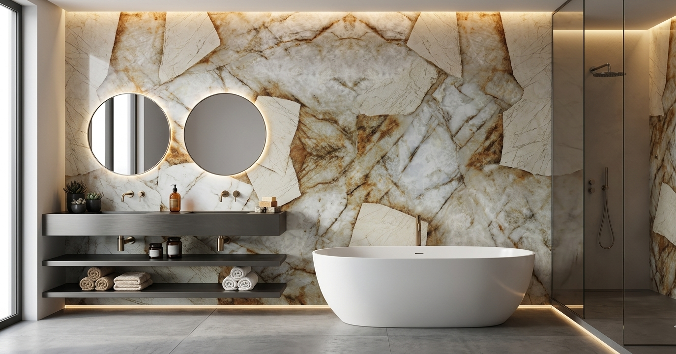 Porcelain slabs are a luxurious and durable choice for elegant spaces.