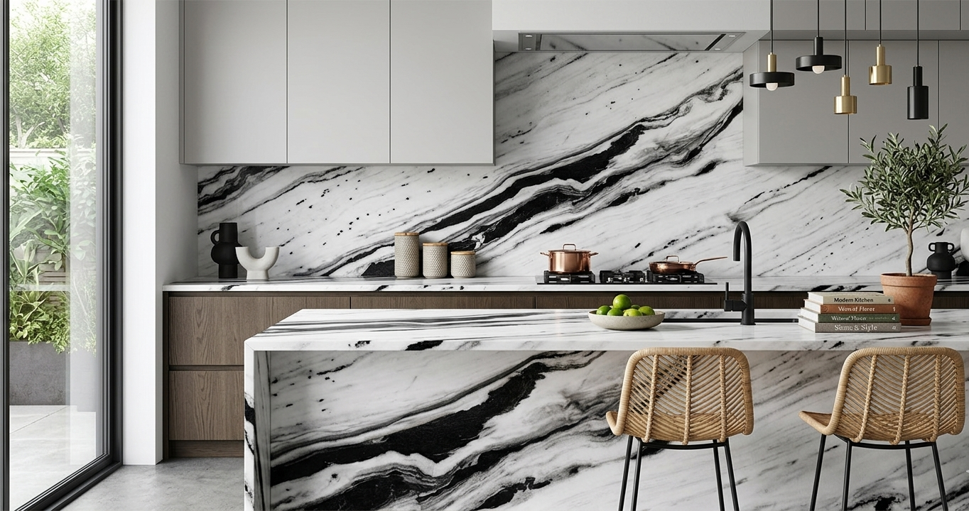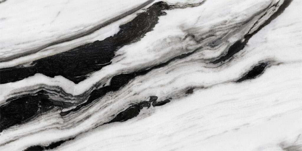 Blanc Panda features its own unique veining pattern and movement, giving each slab a distinct visual identity. Designed for countertops, walls, and architectural applications, this Ultra Compact Surface offers durability, low maintenance, and long-term performance while elevating the overall design of the space.