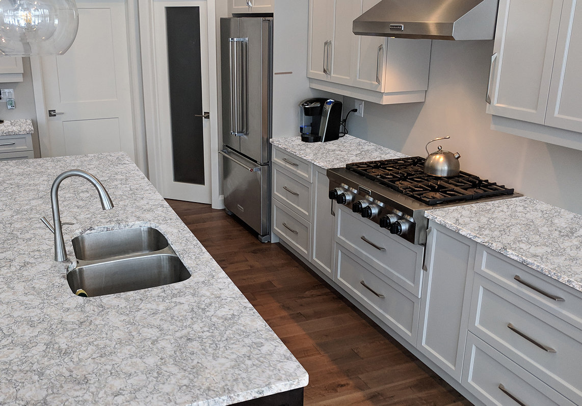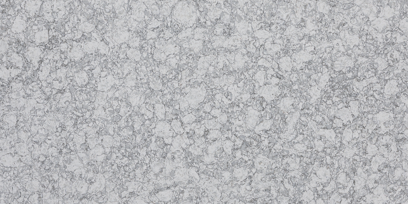 Chukchi Sea quartz showcases a complex, multidimensional pattern of cool grey and icy white tones that mimic the look of natural granite. Its densely packed, pebble-like crystalline structure creates a rich texture that adds depth and character to any high-traffic surface.