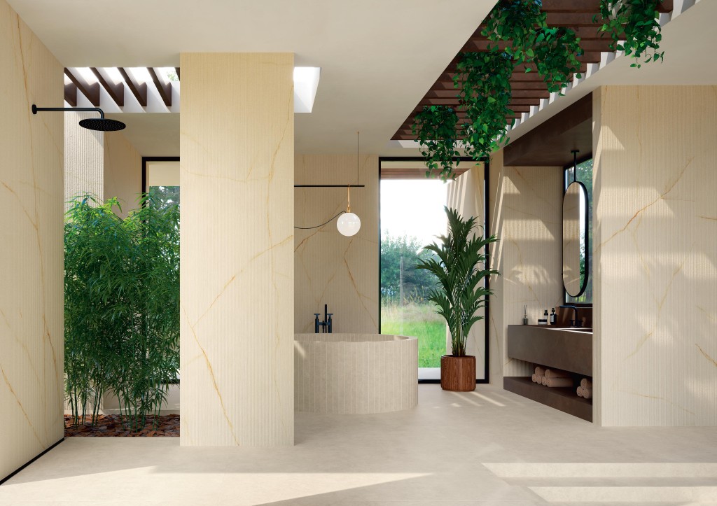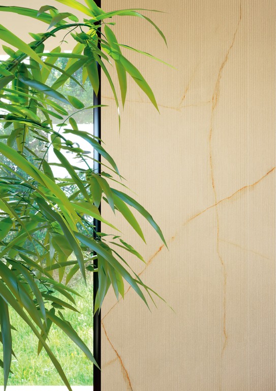 This slab features a translucent, crystalline base enriched by amber and honey-colored fractures that create a sense of radiant depth. Its complex, multifaceted pattern offers a jewel-like quality, perfect for backlighting or as a sophisticated, high-end feature in a primary suite.
