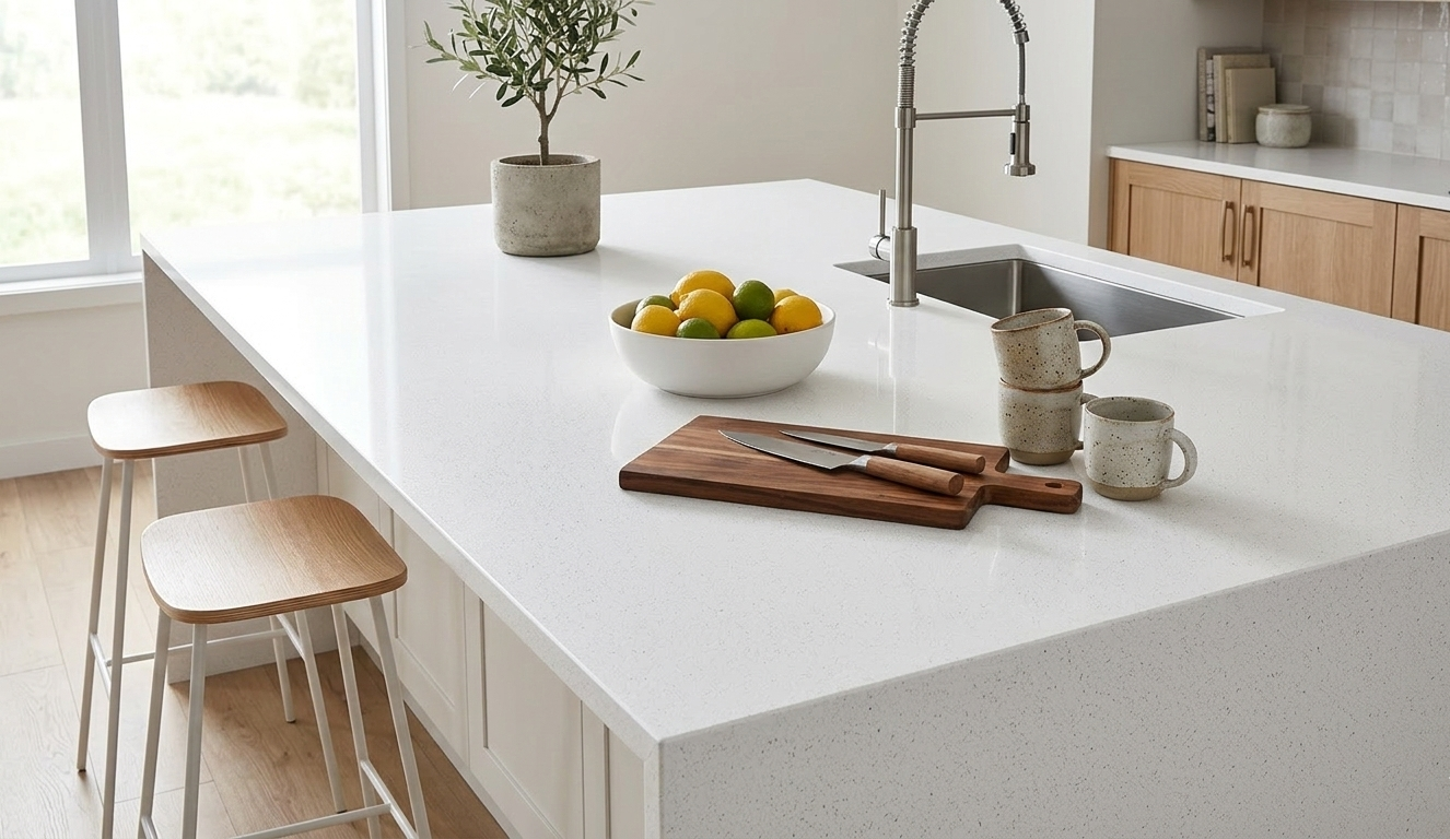 Diamond White features a brilliant, pure white surface with a fine, consistent grain that provides a bright and airy feel. This versatile quartz is a perfect choice for creating clean, seamless kitchen countertops or refreshing bathroom vanities.