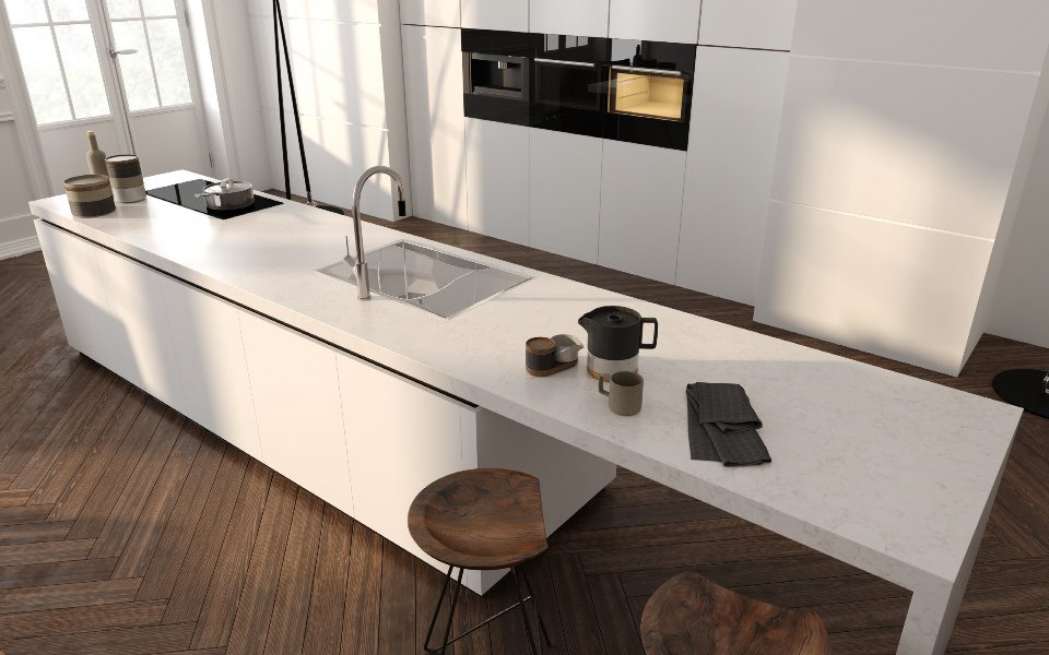 Quartz slabs are durable and ideal for busy and high-traffic areas.