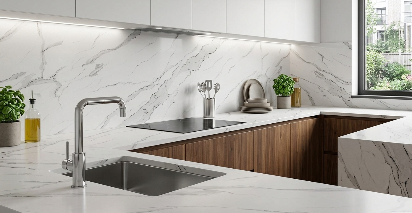 Featuring a crisp white backdrop and fluid, charcoal-grey veining, Elora Quartz offers the timeless elegance of classic marble with the superior durability of modern engineering. Its sweeping, dramatic patterns make it a stunning centerpiece for sophisticated kitchens and bathrooms alike.