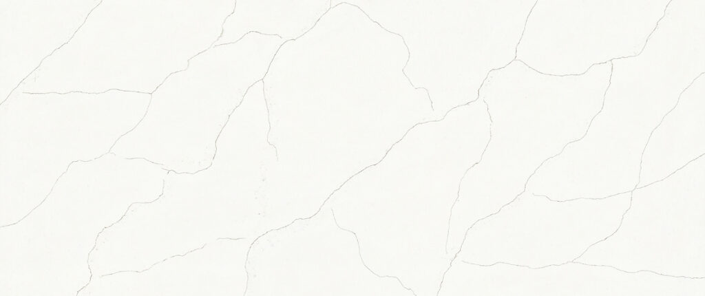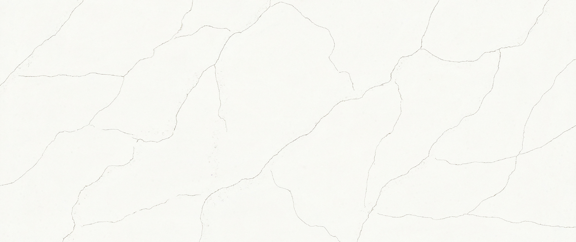 This quartz slab features a crisp white surface defined by long, jagged charcoal veins that branch out like lightning. Its sharp, minimalist pattern provides a high-contrast, modern aesthetic that adds a sense of clean energy and architectural precision to any kitchen or bathroom.