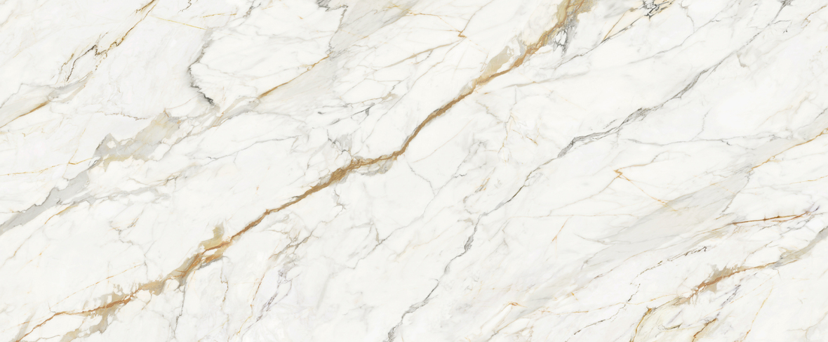 A radiant quartz slab defined by striking gold and copper-colored veins that intersect across a soft white field. This material perfectly blends classic stone artistry with a warm, contemporary palette for a truly high-end finish.