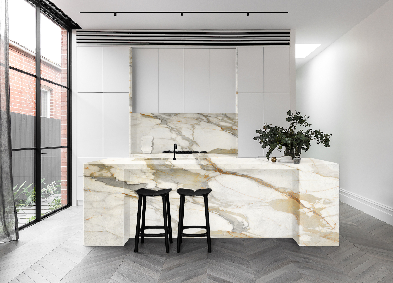 This quartz slab features high-contrast coloration with bold, flowing rivers of caramel and bronze anchored by deep slate-grey accents. Its painterly movement and rich, earthy palette create a commanding presence that serves as a spectacular centerpiece for any premium design.