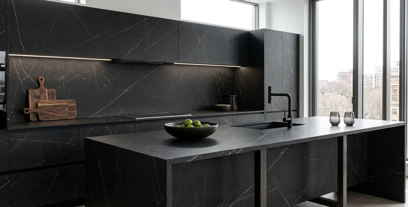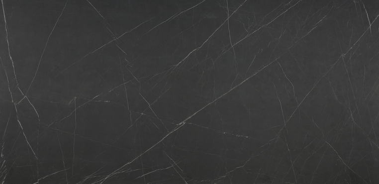 This porcelain slab showcases a sophisticated, deep charcoal-grey canvas. It is characterized by a fine network of crisp, white linear veins that strike across the surface with varying intensity. The minimalist, high-contrast pattern provides a timeless and elegant look, suitable for modern architectural environments.