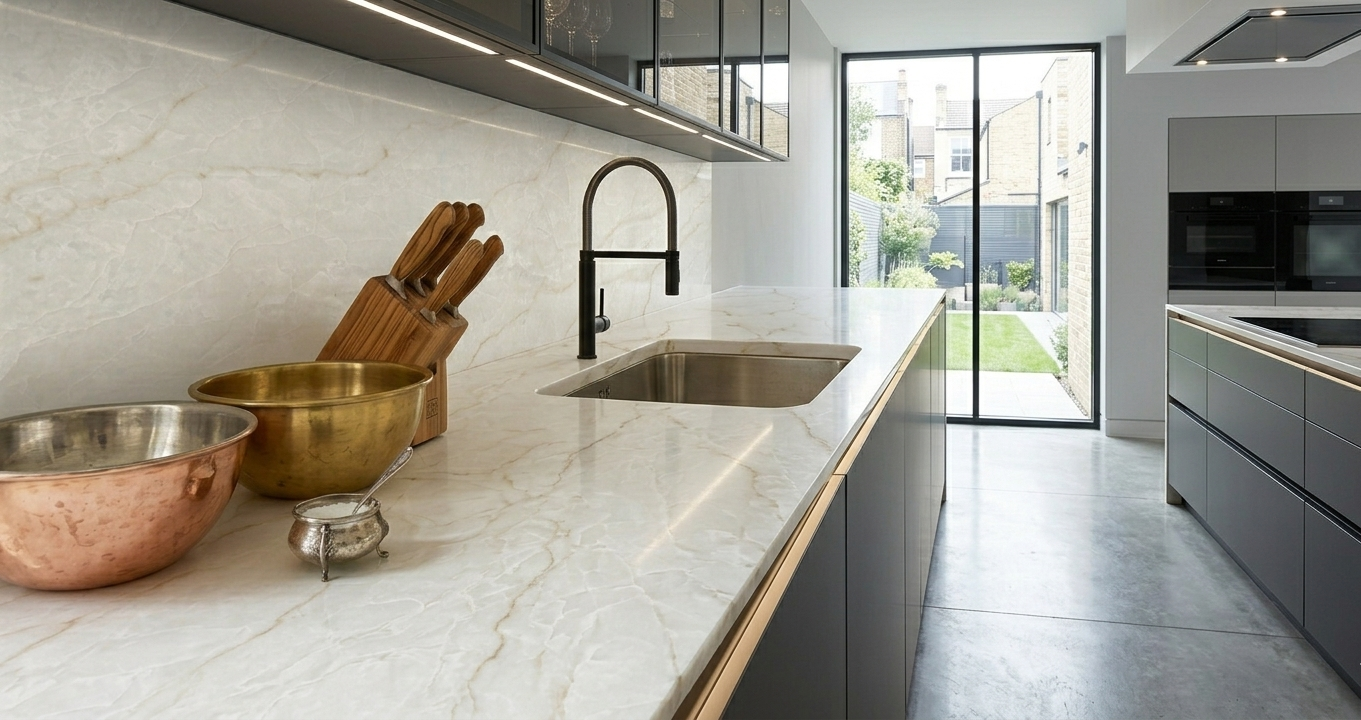 Porcelain slabs are a luxurious and durable choice for elegant spaces.