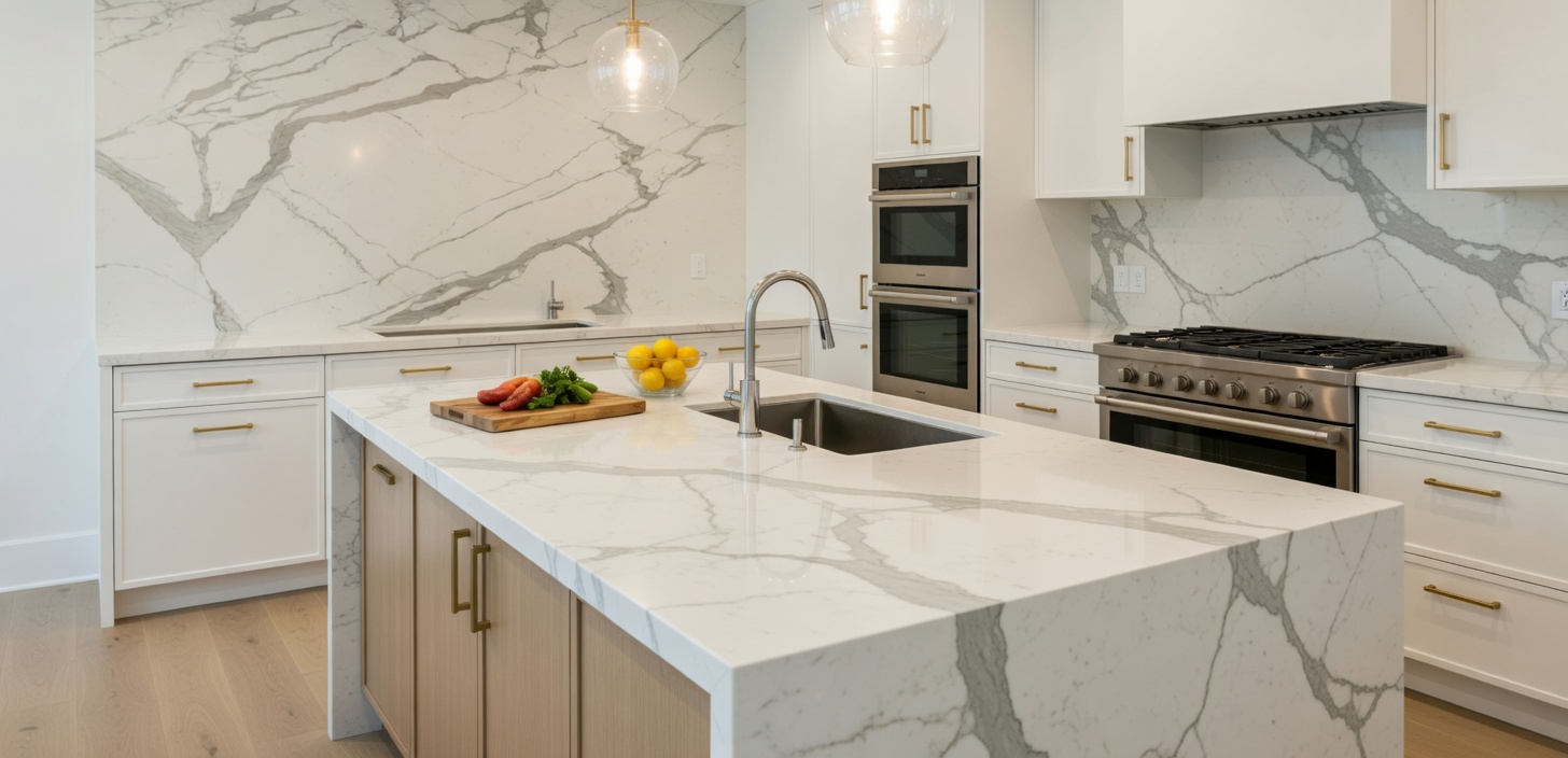 This porcelain slab features a bright white canvas defined by large-scale, flowing grey veins. The bold, sweeping patterns are complemented by delicate, feathery lines that create a balanced and luxurious composition, capturing the timeless appeal of classic Italian marble.